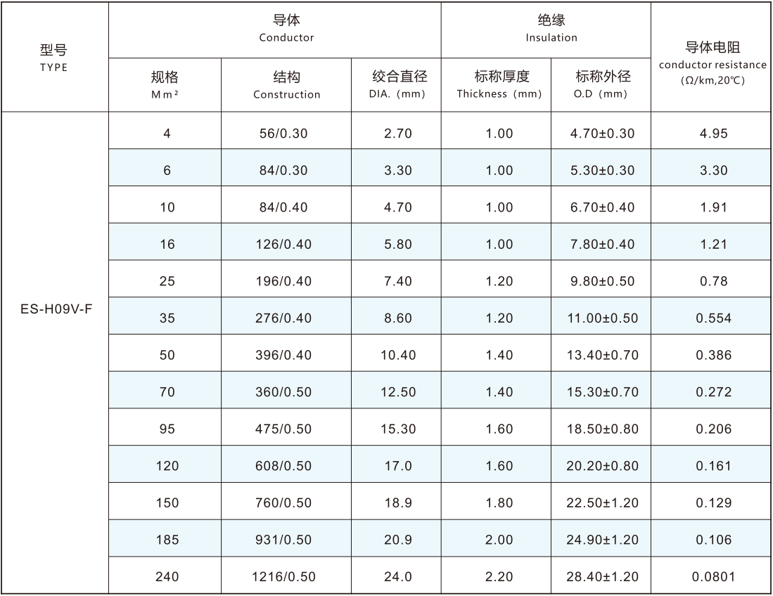 導(dǎo)體采用IEC60228-2004標(biāo)準(zhǔn)第五類或六類導(dǎo)體4.0-240mm2鍍錫或裸銅